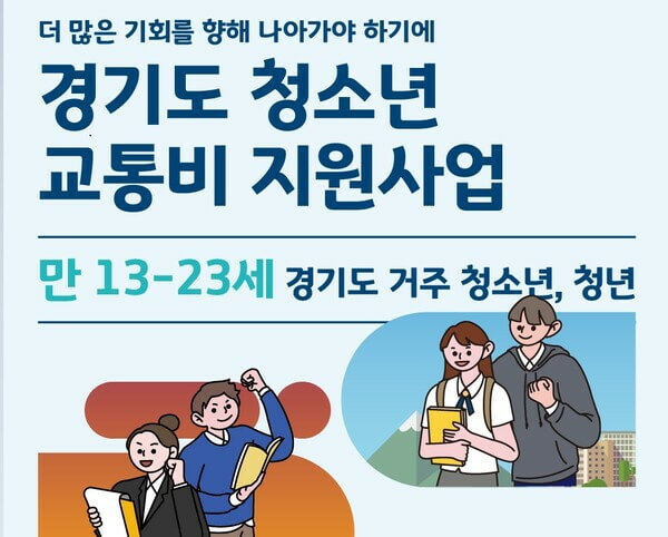 교통비까지 요금이 오르다 보니 생활비 부담이 많으시죠? 대중교통 이용하는 청소년들에게는 부담이 더더욱 커지고 있습니다. 경기도에서 경제적으로 교통비 부담이 있는 청소년에게 교통비 지원을 해주는 사업이 있어서 신청자격과 신청방법 등을 알아보도록 하겠습니다.