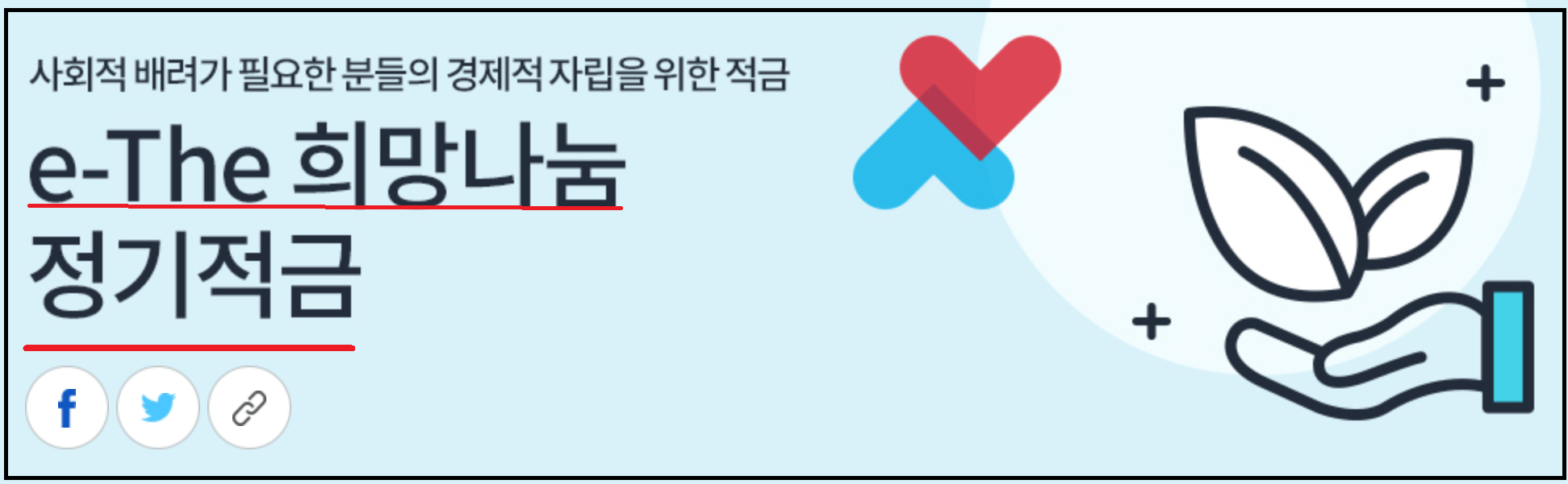 e-The희망나눔 정기적금은 사회적 배려가 필요한 분들이 경제적 자립을 할 수 있도록 고금리로 가입할 수 있는 적금입니다.