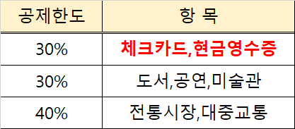 표에서도 확인했든이 상품권을 카드로 구매했을 때 소득공제 제외가 됩니다.