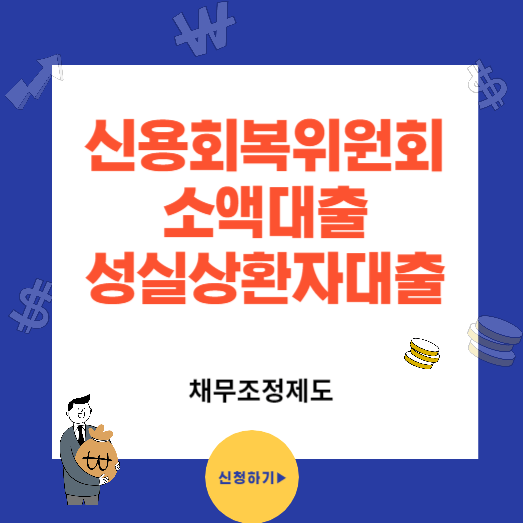 채무 감당이 어려워 막막하신 분들을 위해 신용 회복 위원회에서는 비대면 소액대출과 성실상환자 대출을 이용하실수 있습니다. 또한 채무조정제도를 통해서 경제적 재기를 할 수 있도록 다양한 제도도 준비되어 있는데요. 이번 시간엔 이런 제도들의 신청조건과 방법에 대해서 알아보도록 하겠습니다.