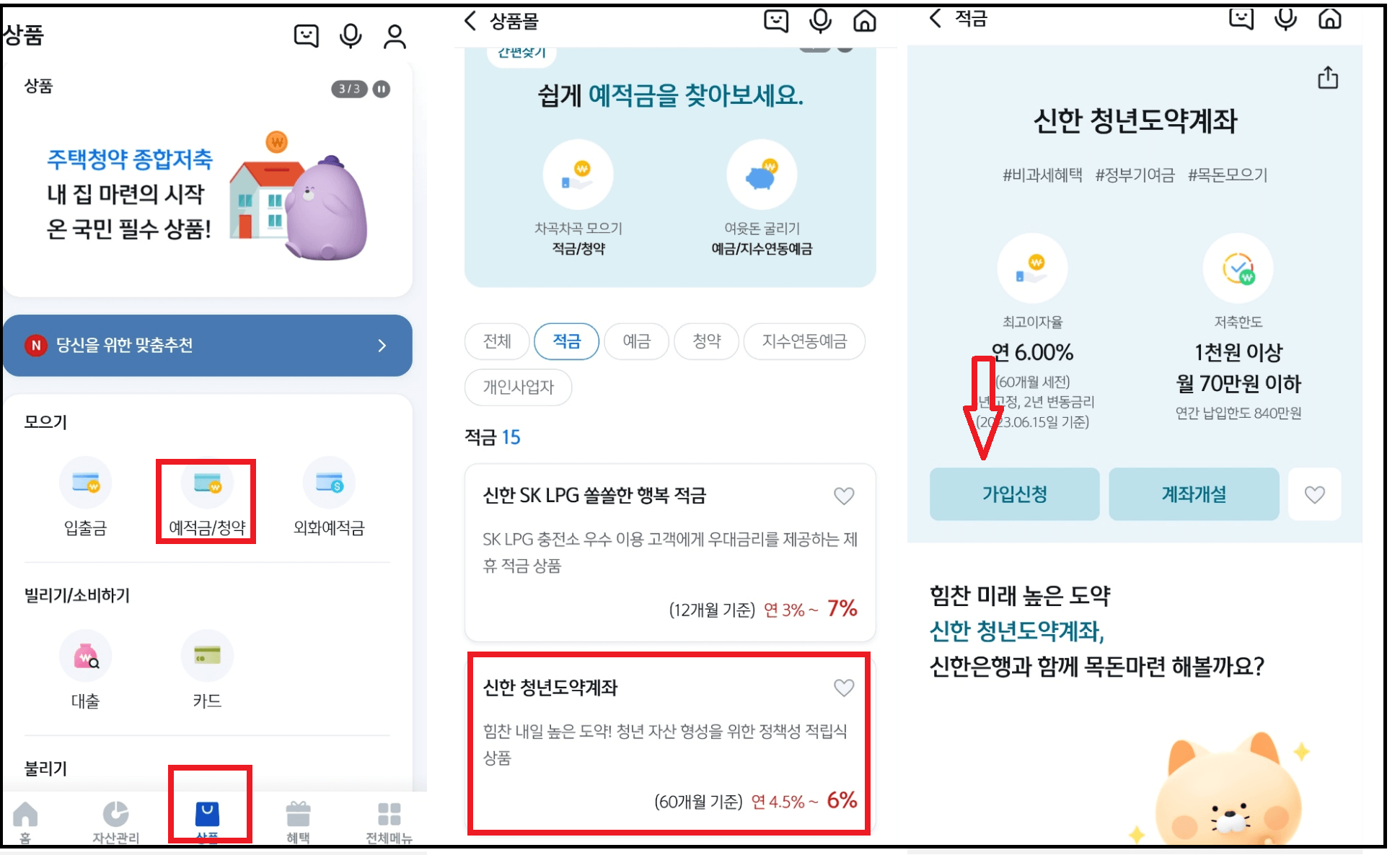 2. 적금 가입 순서