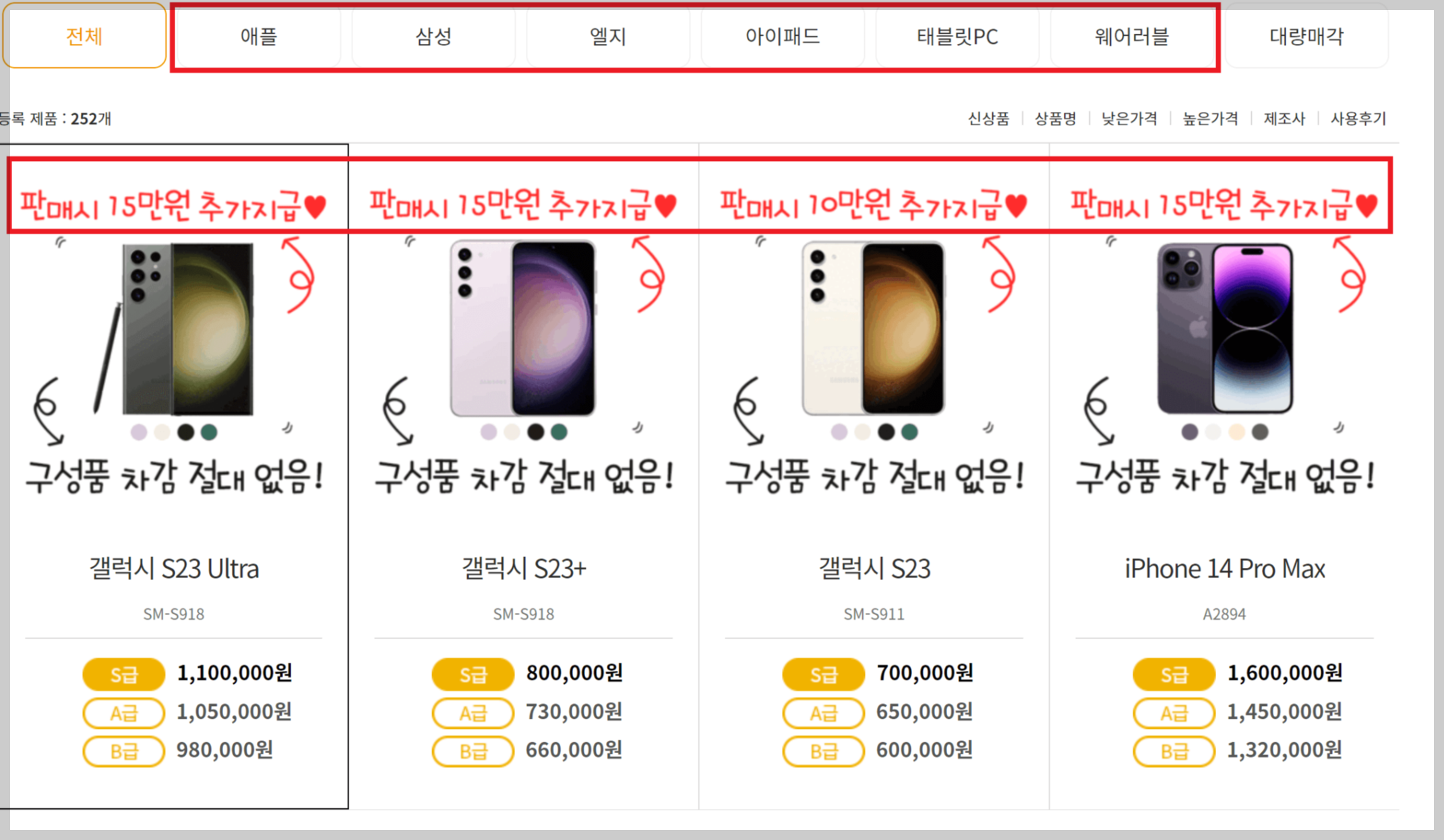판매하려는 휴대폰 기종에 따라 판매시 최대 15만원 추가지급 혜택이 있습니다.