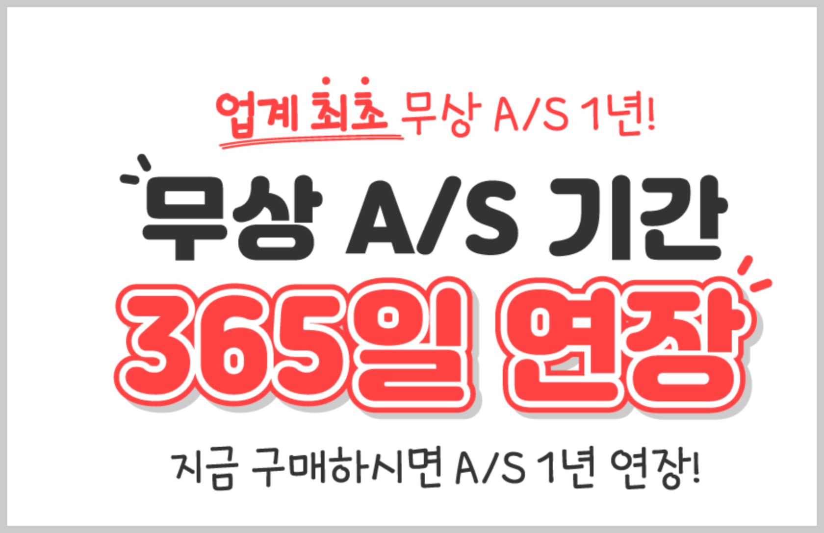 지금 구매하면 업계최초로 무상 A/S 기간 1년 365일 연장이 된다고 합니다.