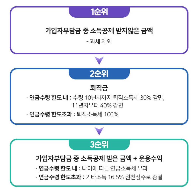 연금을 인출할 때 퇴직금부터 출금이 출금이 되나요? 아니면 개인 납입금부터 연금 출금이 되나요? 많이들 궁금해하시는 부분일 텐데요. 이 부분은 세법에 정해진 순서대로 받게 됩니다.
