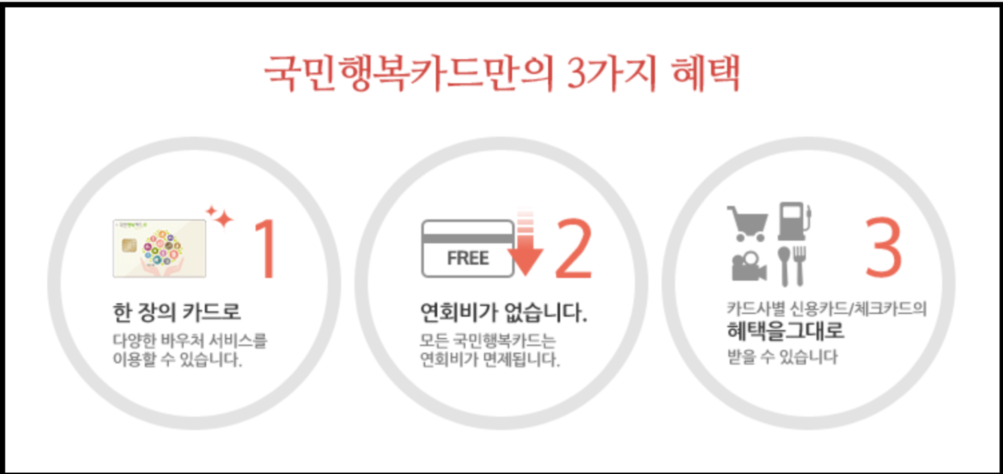 | 17종 국가복지 바우처를 국민행복카드로 이용할수있으며, 앞으로도 바우처가 추가 될 예정입니다. |