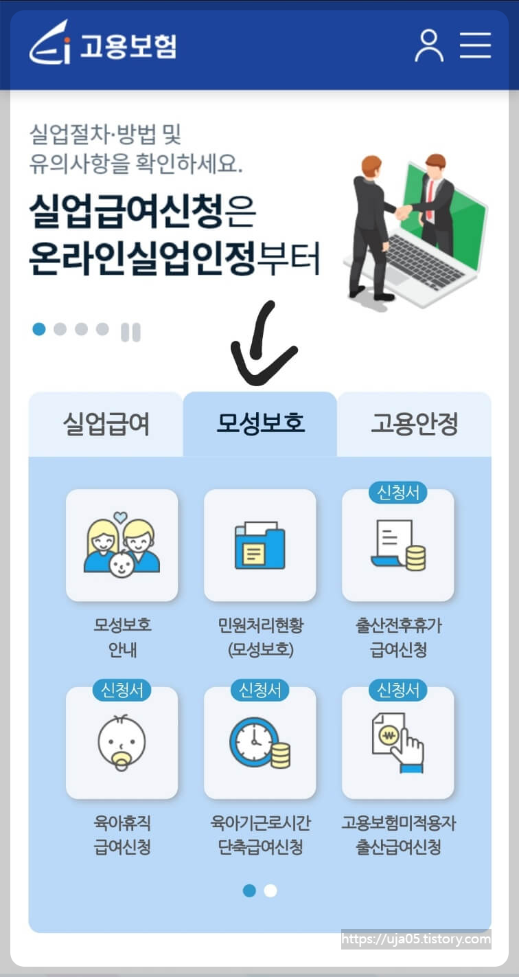 고용보험 모바일 앱에서 위와 같은 내용이 팝이 되는 경우는 두 가지입니다.사업주가 아직 고용보험 쪽에 육아휴직확인서 신청을 온라인으로 안 했을 경우입니다. 이 경우 간단하게 회사에 전화해서 재촉하면 됩니다.