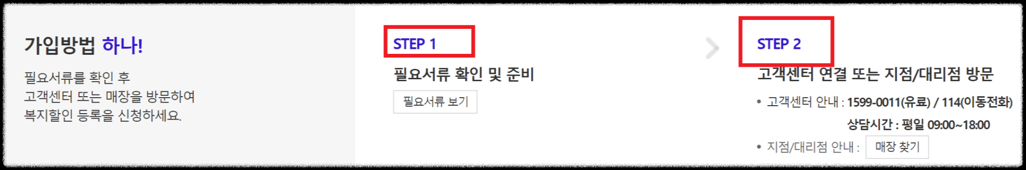 필요서류를 확인해서 고객센터 또는 매장을 방문하여 복지할인 등록하실 수 있습니다.