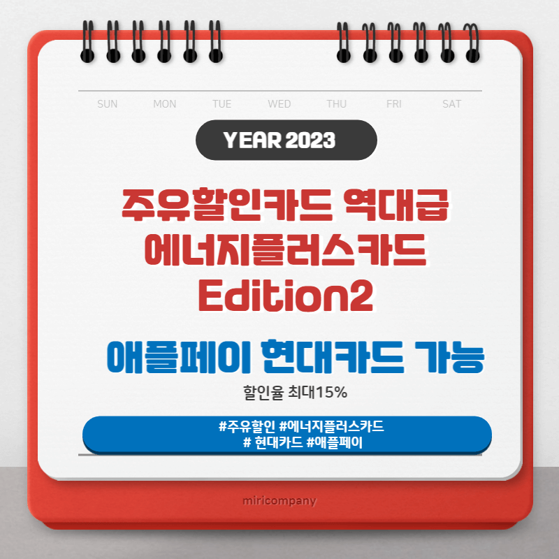 교통비를 줄이기 위해서 주유할인 카드 찾으셨나요? 역대급 할인율이라 놀라실 텐데요. 주유할인을 최대 15%까지 받을 수 있고, 애플페이 국내상륙으로 아이폰사용자도 이용가능한 카드를 알려드리겠습니다. 현대카드에서 나온 에너지 플러스카드 Edition2로 어떻게 주유할인을 받을 수 있는지와 애플페이 등록후 이용방법까지 확인해 보겠습니다.