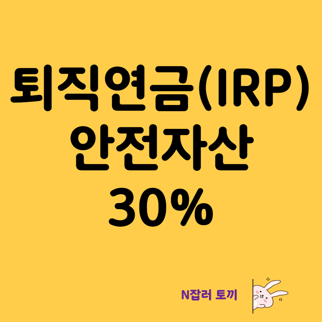퇴직연금(IRP)은 투자상품에 대해서 위험 투자 비중과 안전자산 비중을 법으로 규제하고 있습니다. 아무래도 노후에 사용할 자금이기 때문에 성향이 다른 상품군별로 개인이 투자를 할 수 있는 가능 한도를 정해 두었습니다. 그게 바로 위험자산 70% 규정입니다. 나머지 30%는 안전자산에 꼭 투자가 되어야 합니다.