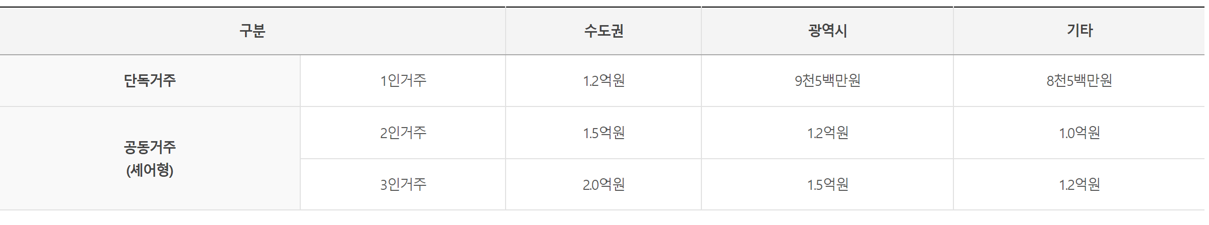 | 대출 한도 | 최대 2억원 이내 ( 임차보증금의 80% 이내 ) | ||