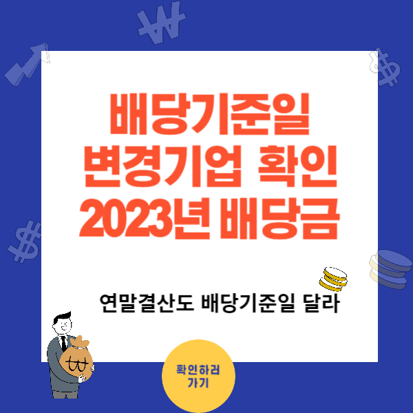 2023년 연말결산 배당 기업은 배당 기준일이 앞으로는 변경될 수 있습니다.배당을 고려해 주식을 매매할경우 꼭 참고하시길바랍니다.