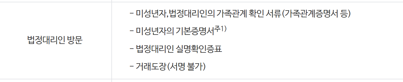 * 본인 방문이 가능한 나이라면 차라리 온라인으로 비대면 개설하는 게 더 간편하고, 비대면개설 시 다양한 이벤트들도 응모하실 수 있으니 참고 바랍니다.